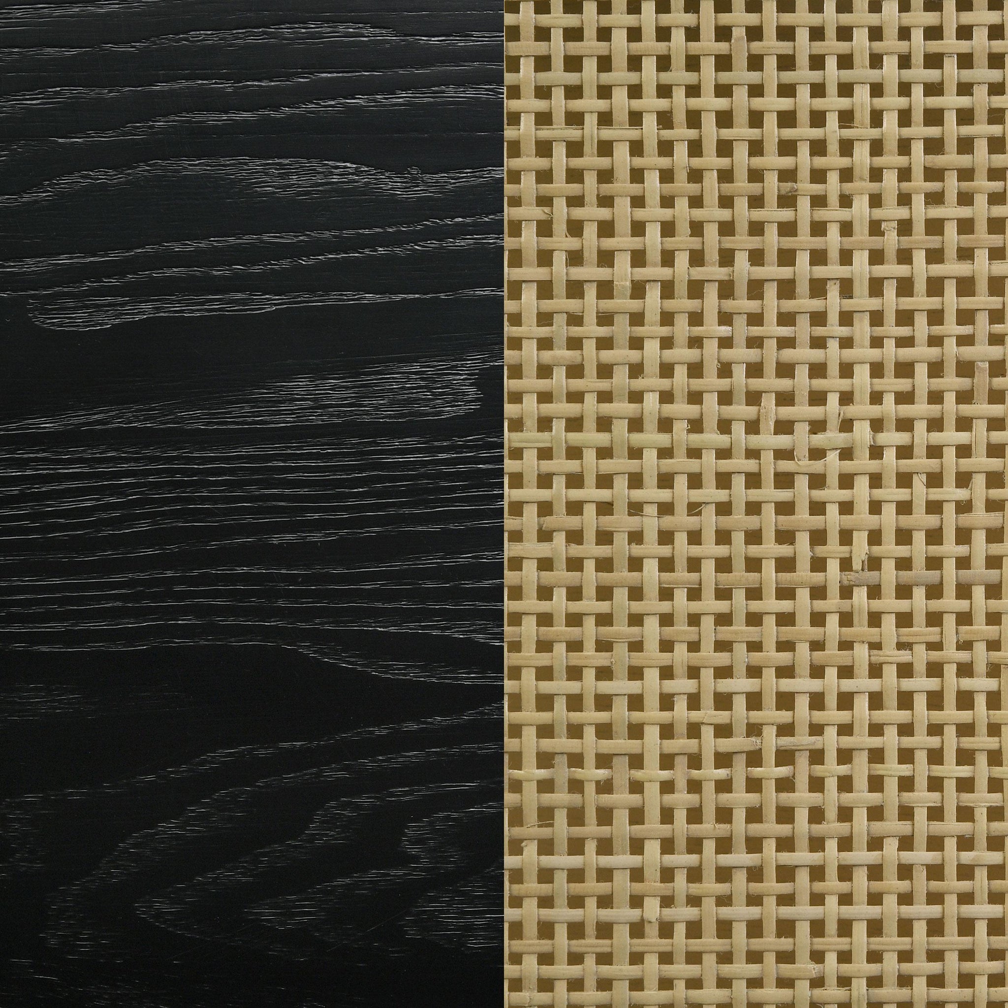 Center your bedroom on a modern coastal bed with a hint of glam flair. Its simple silhouette features a tall headboard and low footboard, each with a squared profile and rounded corners that soften the overall effect. The head and footboards feature woven rattan in a natural finish, creating a sense of both texture and warmth to complement in your modern bedroom. Slender legs feature a muted golden finish that's a perfect complement. Black finish decorates the framework and rails of the bed, creating a bold statement piece that becomes the instant centerpiece of your stylish decor.