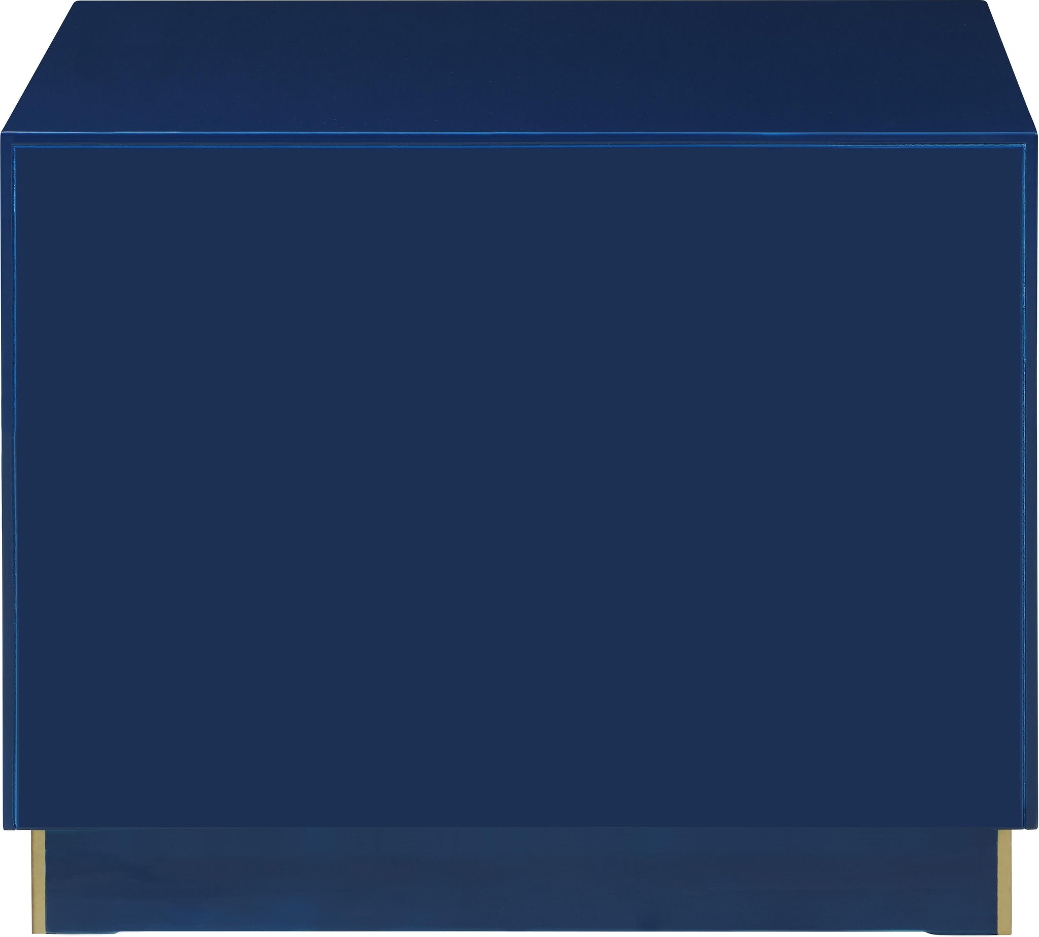 House everything you need in your room out of sight with the help of this Cosmopolitan side table, a perfect addition to a bedroom or living room space. This elegant and eye-grabbing unit features a stunning navy lacquer finish along with a gold stainless steel base and acrylic and gold handles. The overall result is a table that���s both chic and sophisticated���and that meshes well with other contemporary accents in your room.