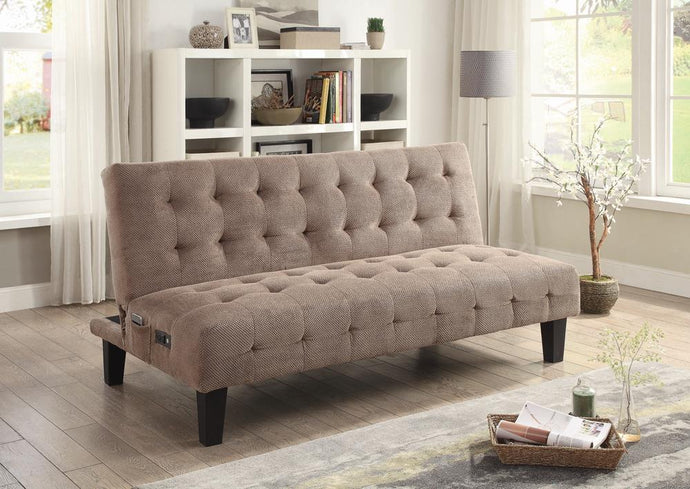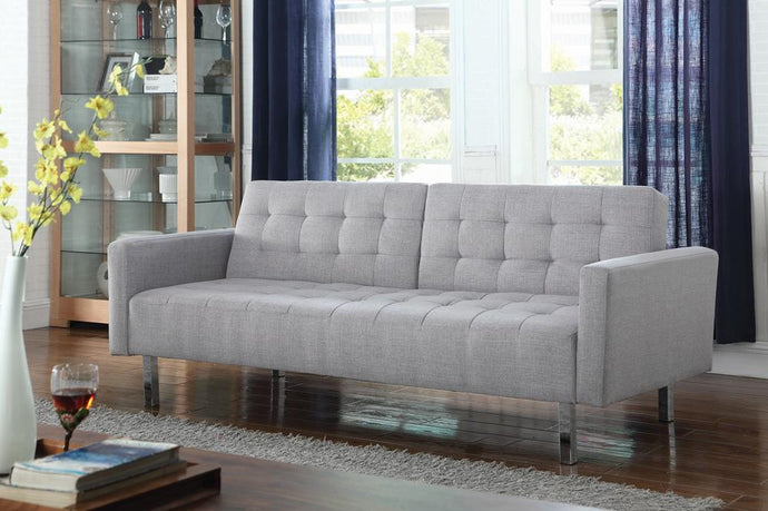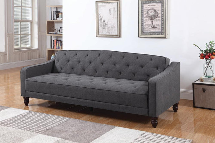 Sophia Upholstered Sofa with Camel Back Grey and Gold