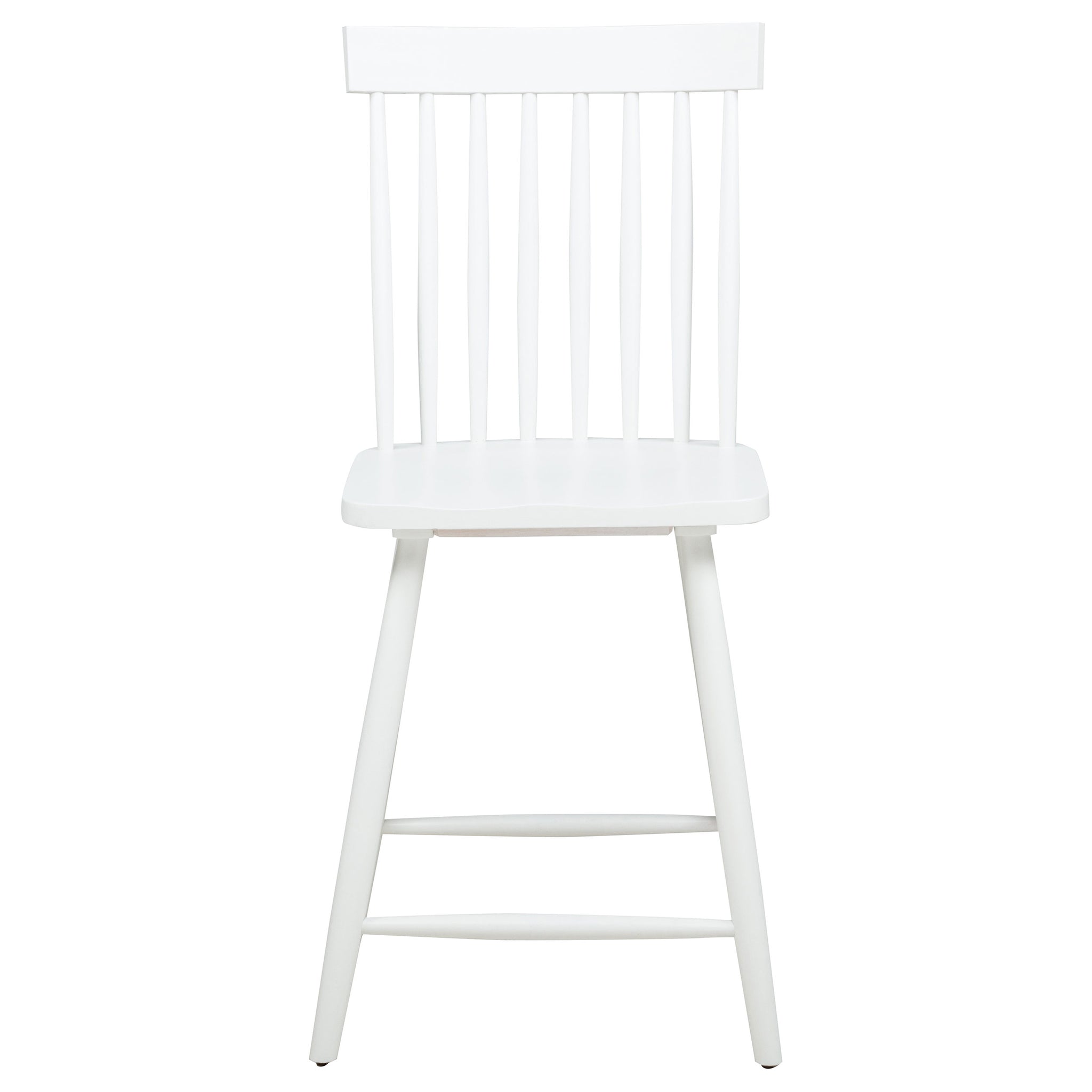 Classic and casual with a fresh farmhouse flair, this Windsor-style counter height chair features a high spindle back and gently contoured seat for timeless comfort. The clean silhouette is crafted from solid rubberwood with a rich wood veneer that enhances its natural grain. Angled legs with double stretchers offer reliable support and charm. Ideal for kitchen islands, pub tables, or counter-height dining spaces. Key Features: • Windsor-style counter height chair in light ash finish brings casual elegance to kitchen counters • High spindle back and curved seat on this counter chair support relaxed, upright dining comfort • Angled leg design adds stability while enhancing its signature farmhouse-style silhouette • Footrest stretchers provide extra comfort and structural integrity for daily use • Crafted from solid rubberwood and topped with a warm-toned wood veneer for natural appeal • Clean, timeless lines and elevated height work perfectly with counter-height tables or bars