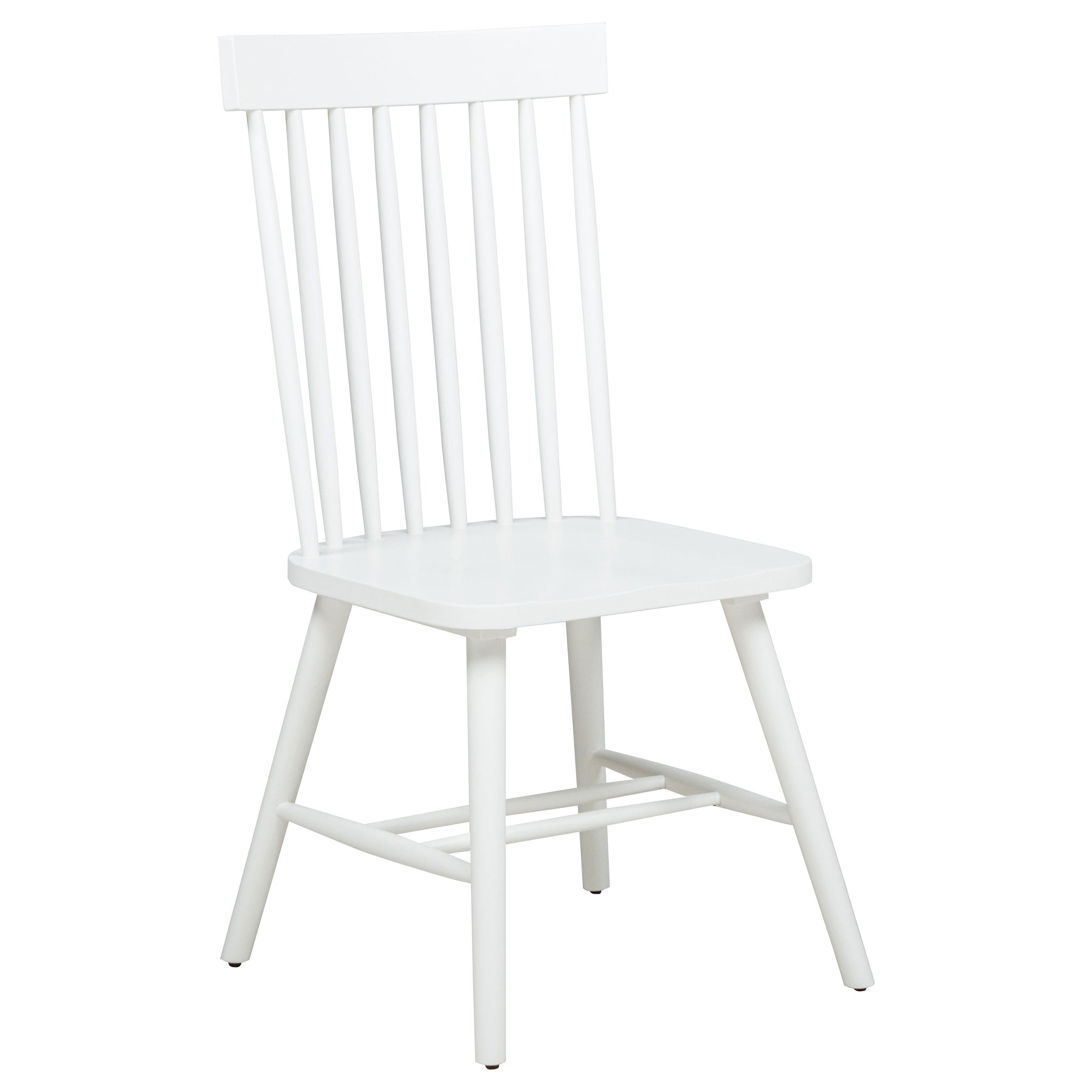 Classic and casual with a fresh farmhouse flair, this Windsor-style side chair features a high spindle back and gently contoured seat for timeless comfort. The clean silhouette is crafted from solid rubberwood with a rich wood veneer that enhances its natural grain. Angled legs with double stretchers offer reliable support and charm. Ideal for everyday dining, breakfast nooks, or cozy kitchen spaces. Key Features: • Windsor-style side chair in light ash finish offers timeless form with a farmhouse-inspired silhouette • Dining chair in light ash includes a tall spindle back and gently curved seat for classic comfort • Windsor backrest design promotes airy support and a traditional yet casual dining aesthetic • Contoured seat enhances comfort while angled legs provide a balanced and grounded profile • Double side stretchers deliver extra durability and everyday strength for long-term use • Crafted from solid rubberwood and finished in wood veneer for warmth, charm, and resilience