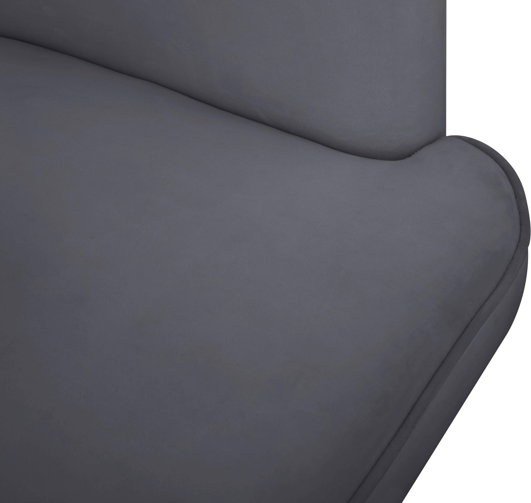 Set your interior space up for drama with this Rays velvet accent chair. This bold design is a guaranteed eye-catcher from any angle and in any room. The soft grey velvet upholstery adds to its upscale feel, and the brushed gold metal finish on the legs and frame drive home its contemporary feel. Place it in any room where you want to enjoy the best seat in the house.