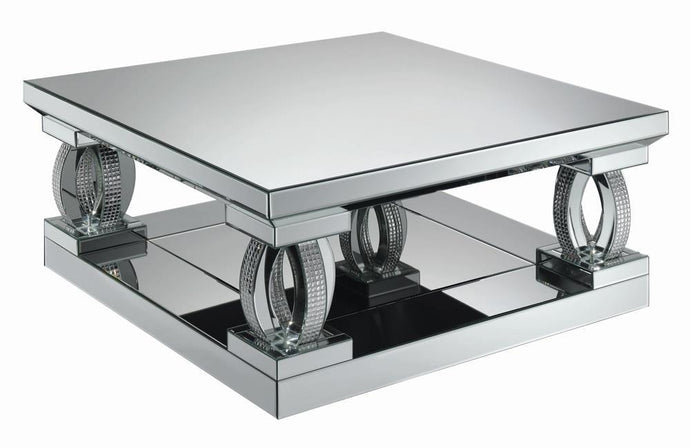 Amalia Square Coffee Table with Lower Shelf Clear Mirror