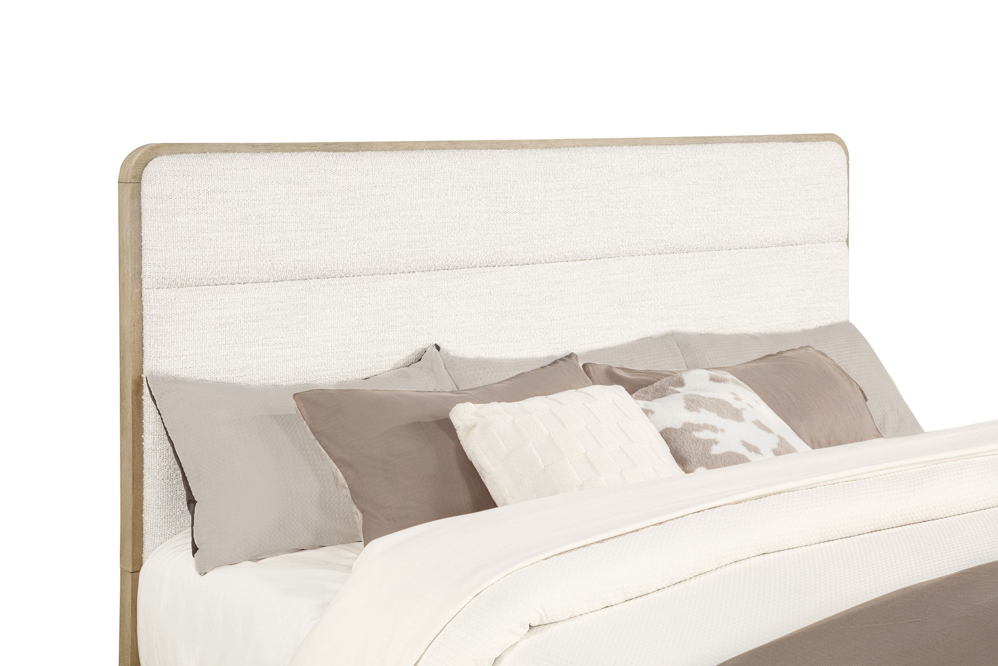 This contemporary panel bed redefines bedroom style with its light elm finish and soft, rounded corners that elevate modern design. The solid wood frame ensures reliable durability, while the cream boucle upholstered headboard adds a plush, teddy bear-soft texture for ultimate relaxation. Designed with understated elegance and practical craftsmanship, this bed is perfect for any home seeking a blend of contemporary aesthetic and lasting quality. Key Features: • Contemporary queen panel bed with a light elm finish for a modern, clean aesthetic • Solid wood frame ensures durability and reliable support for long-term use • Cream boucle upholstered headboard adds a plush, teddy bear-soft texture for comfort • Rounded corners enhance the sleek design while offering added safety • Perfectly suited for contemporary and transitional bedroom styles • Made with durable materials for lasting functionality and design appeal