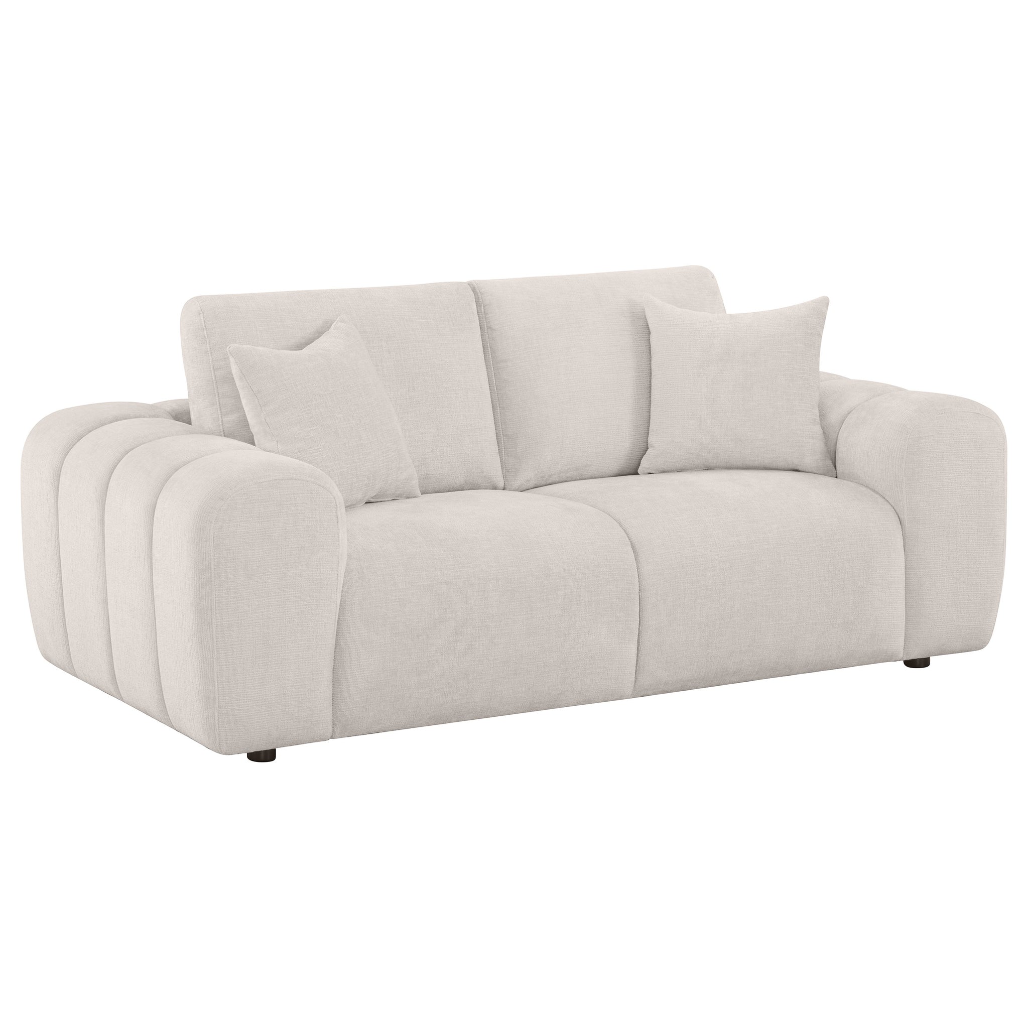 Bold curves and sculptural comfort define this modern sofa set, blending relaxed luxury with artistic form. Oversized arms and deep cushions create an inviting silhouette, while ultra-soft chenille upholstery offers a rich, cozy texture. Built from solid rubberwood and engineered wood, each piece balances visual impact with everyday durability. Perfect for living rooms, lounges, or open-concept interiors that embrace bold style. Key Features: • Sofa set features oversized arms and sculpted shapes for bold, modern comfort • Upholstered in plush burnt orange chenille for cozy texture and soft touch appeal • Rounded profiles and deep cushions create a relaxed, lounge-worthy silhouette • Accent pillows included on select pieces for added comfort and balanced design • Durable frame built from rubberwood, plywood, and engineered wood • Versatile pieces fit perfectly in modern lounges, open layouts, or cozy living rooms