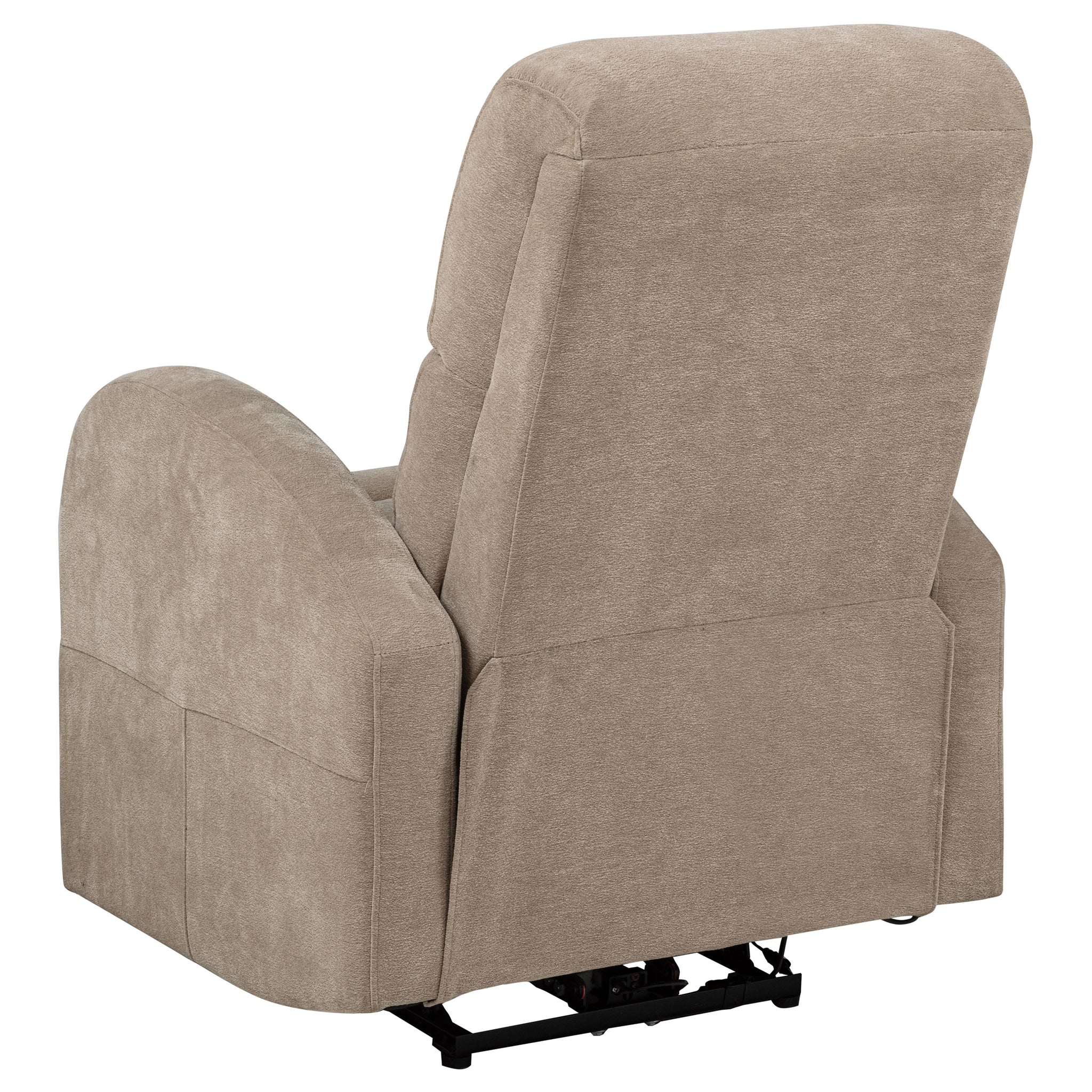 Create the perfect place for stylish lounging with a modern power recliner in your den or living room. It delivers a compact silhouette, offering on-trend style, with neutral faux leather upholstery. Its tall, slim back and plush seat feature foam cushioning, ensuring excellent comfort whether enjoying a movie or catching up with a friend. The power recline functionality is operated with buttons on the right-hand side, ensuring smooth performance. It's complete with track arms with an upward sloping profile perfect for contemporary and modern living spaces. Key Features: • A power recliner includes easy button controls for smooth, seamless performance • Faux leather upholstery is smooth and sleek, in a neutral color that blends into surrounding decor • Gracefully rounded arms create a fresh, modern silhouette in your den or living room • Webbed decking offers durable support and structure for attached cushions • Seat features pocket coils and sinuous springs, creating durability and comfort in your home