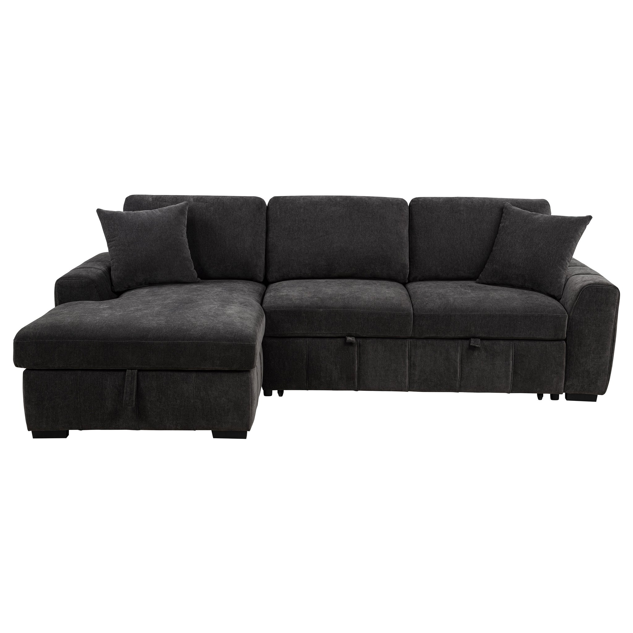 Tailored for comfort and designed for flexibility, this sleeper sectional blends sculptural form with practical function. Wrapped in soft upholstery, it offers plush cushions and deep seating for everyday lounging. A hidden pull-out bed provides an instant sleep solution for guests, while the right side chaise lifts to reveal roomy storage for blankets and more. Vertical tufting and wide track arms add structure and style to this versatile piece. Key Features: • Sleeper sectional in camel upholstery with deep seating and wide track arms for comfort • Hidden pull-out bed creates a spacious sleeping surface for visiting family or guests • Right side chaise lifts to reveal concealed storage ideal for linens and everyday use • Vertical tufting adds tailored detail to the arms, seat cushions, and chaise base • Soft foam cushioning over wood and metal framing ensures lasting strength and support • A multifunctional solution for modern homes needing sleep, storage, and style