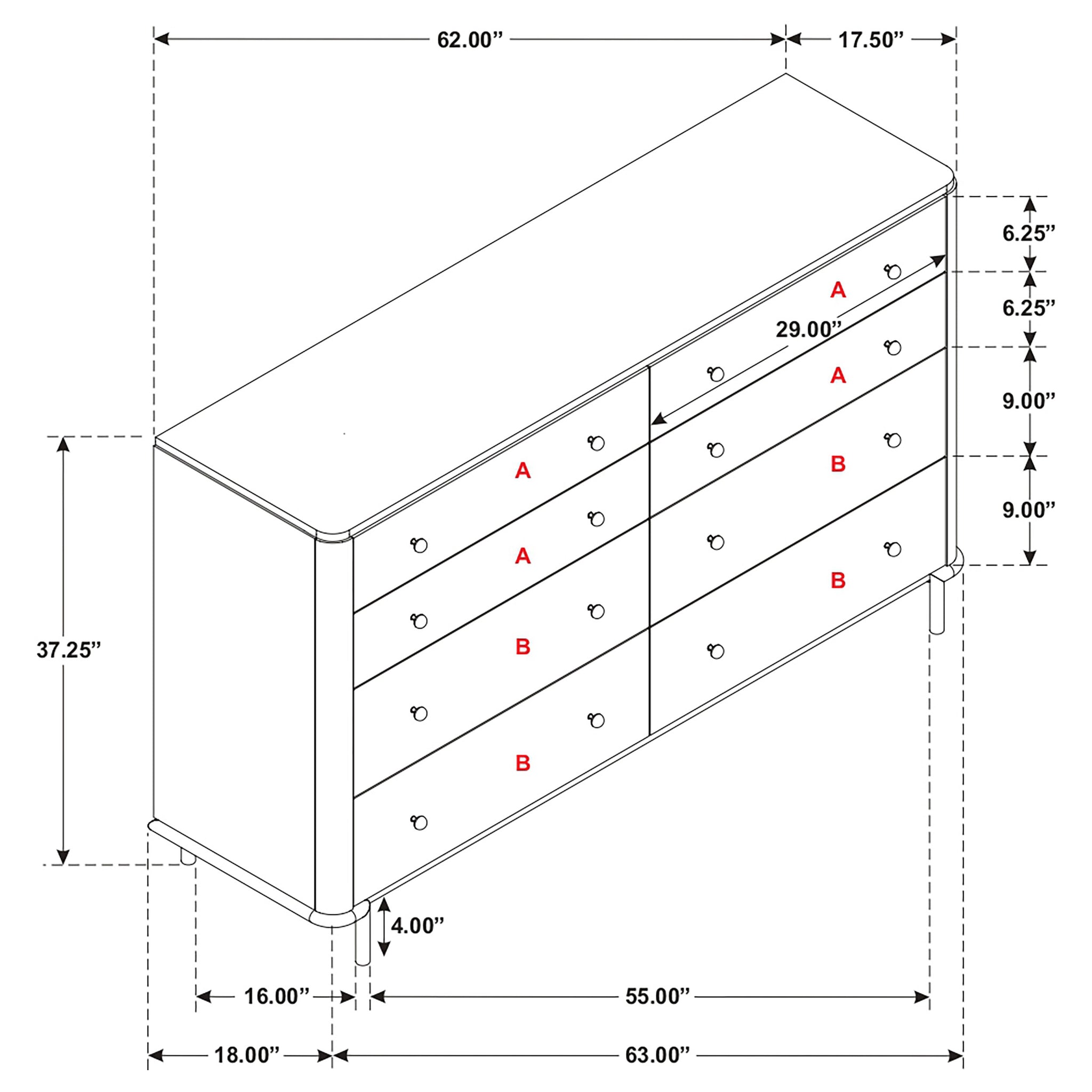 This coastal-inspired bedroom set blends mid-century modern influences with natural textures for a serene retreat. The bed features a cream fabric upholstered headboard and footboard, framed by a wire-brushed wood finish that enhances the beauty of rubberwood, engineered wood, and ash veneer. Aged brass knobs and slender metal legs provide a refined contrast. Designed for modern living, the nightstand includes a built-in dual USB charging port. With its organic textures and functional details, this set offers timeless style and everyday convenience.