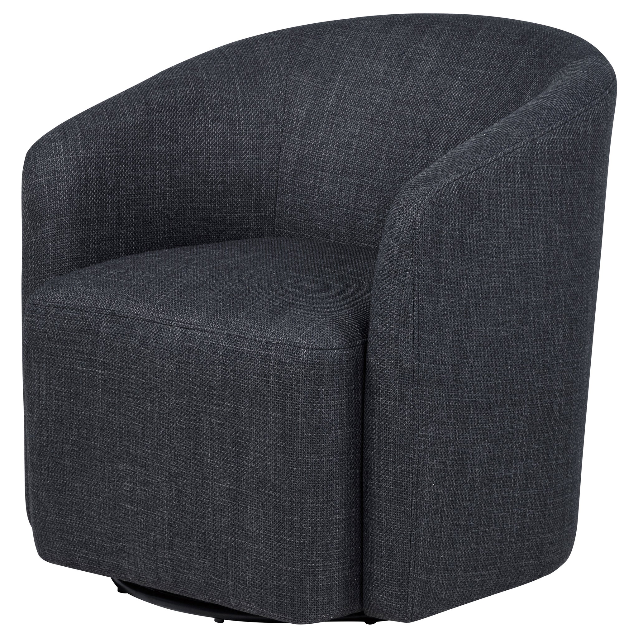 Compact comfort takes a refined turn in this swivel accent chair. Its rounded barrel back and seamless upholstery wrap the frame in sculpted softness, while a hidden swivel base adds dynamic functionality. Tailored for modern lounging, the foam-padded seat delivers support without bulk. With a space-conscious footprint and versatile silhouette, it effortlessly balances form and function in small living spaces or cozy nooks. Key Features: • Swivel accent chair with barrel-style back for modern lounge or reading nook use • Green fabric upholstery adds organic color and soft woven texture to the frame • Hidden swivel base allows smooth, quiet movement for everyday flexibility • Rounded arms and seat design enhance comfort in a sculpted contemporary form • Supportive foam cushion offers everyday softness in a space-saving size • Crafted from polyester fabric, foam padding, engineered wood, and a durable metal swivel mechanism