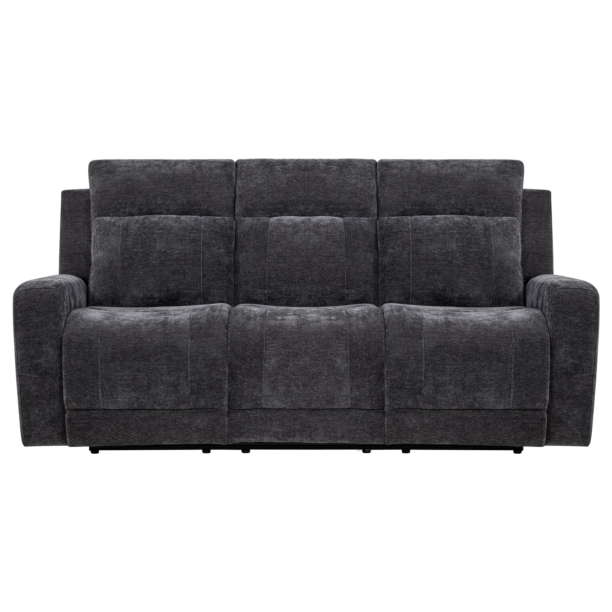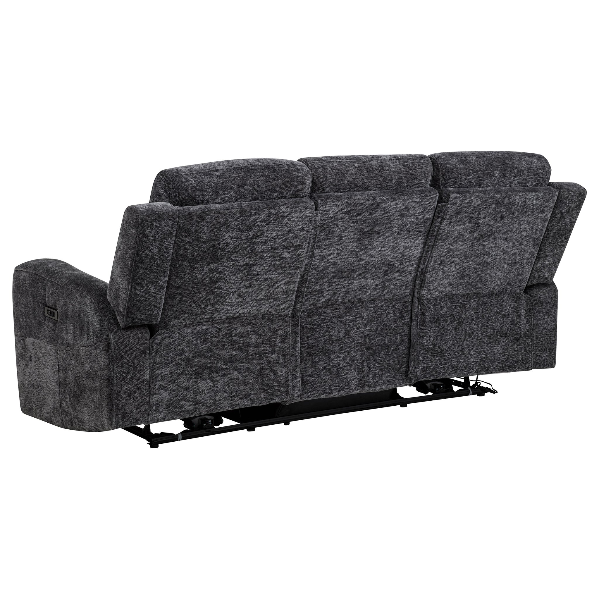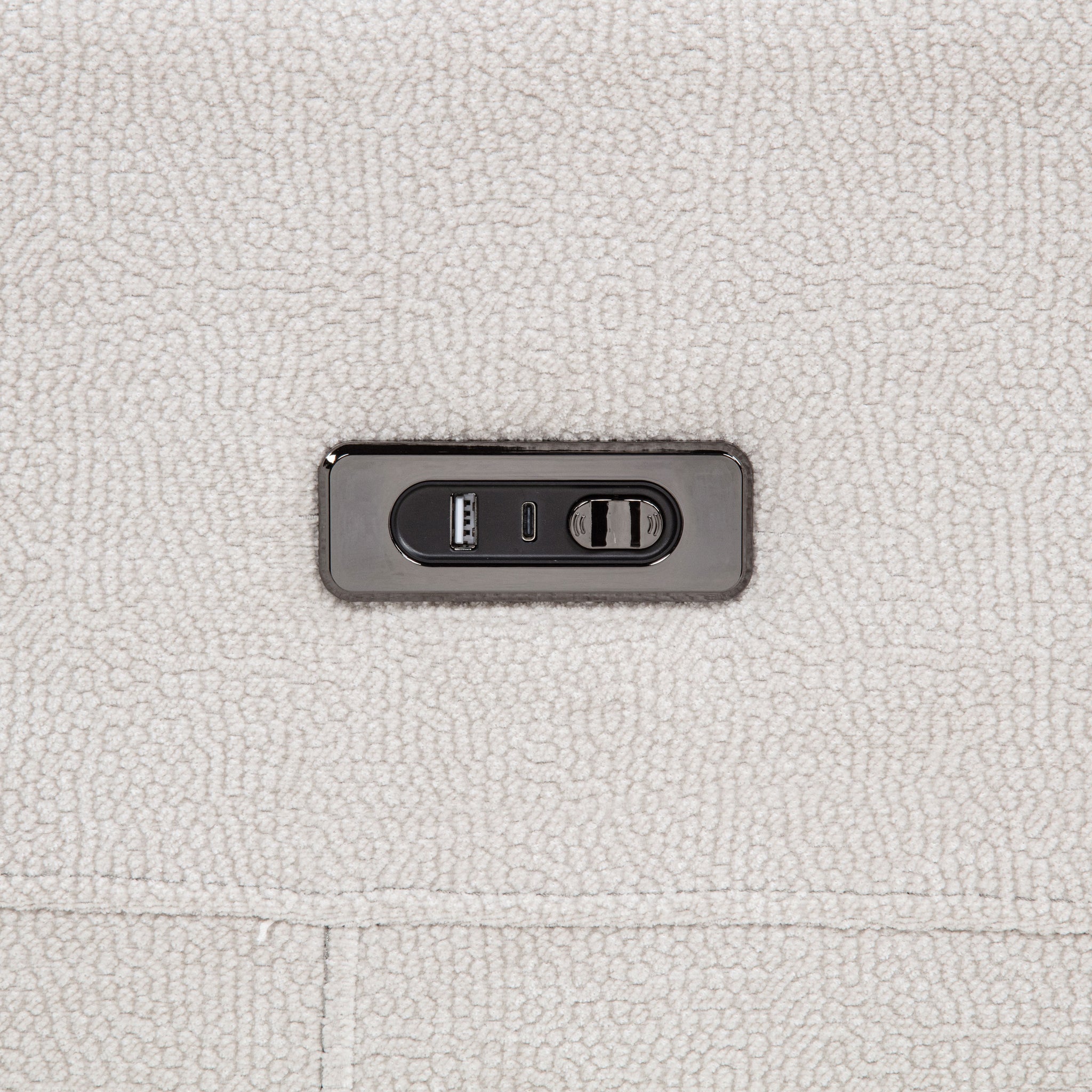 Sink into the soft embrace of this chenille power reclining sofa, where comfort meets thoughtful design. Smooth dual recliners respond at your touch. Built-in USB-A and USB-C ports keep your devices charged as you relax. Wrapped in richly textured chenille and supported by a durable metal frame, this sofa brings modern ease and everyday indulgence to your living space. Key Features: • Dual recliners operate via smooth push-button control • Ivory chenille upholstery showcases a soft surface with subtle woven texture • Features a built-in USB-A and USB-C port for dual-device charging convenience • Padded armrests and supportive headrests enhance lounging and relaxation • Durable metal framing ensures strength and lasting structural integrity • Polyester chenille offers a cozy feel with easy-care, low-maintenance appeal