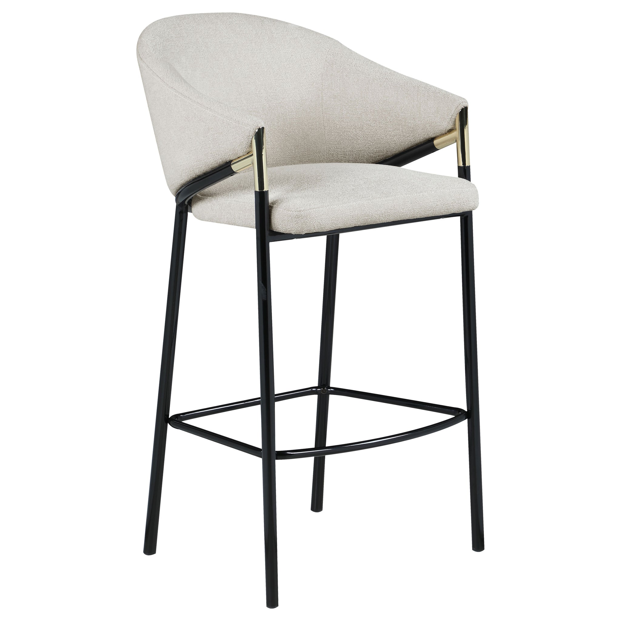 This pair of two stools offer a Hollywood regency look. With a tall and sleek design, the legs come in a glossy black finish that lends to many color palettes and offers a handsome look. Each stool has a cushioned seat, wrapped in a linen-like fabric that is soft to the touch. Plus, lean back and relax between sloped arm rests and a curved high back as you sip cocktails and chat with guests. Capping each arm rest is a gold accented piece that adds a glamorous touch. Key Features: • Tall and sleek design with glossy black finish for versatile color palettes and handsome look • Cushioned seat wrapped in linen-like fabric for soft touch and comfort; sloped arm rests and curved high back for relaxation • Gold accented pieces on arm rests for glamorous touch • Hollywood regency look perfect for sipping cocktails and chatting with guests • Sturdy construction for long-lasting use