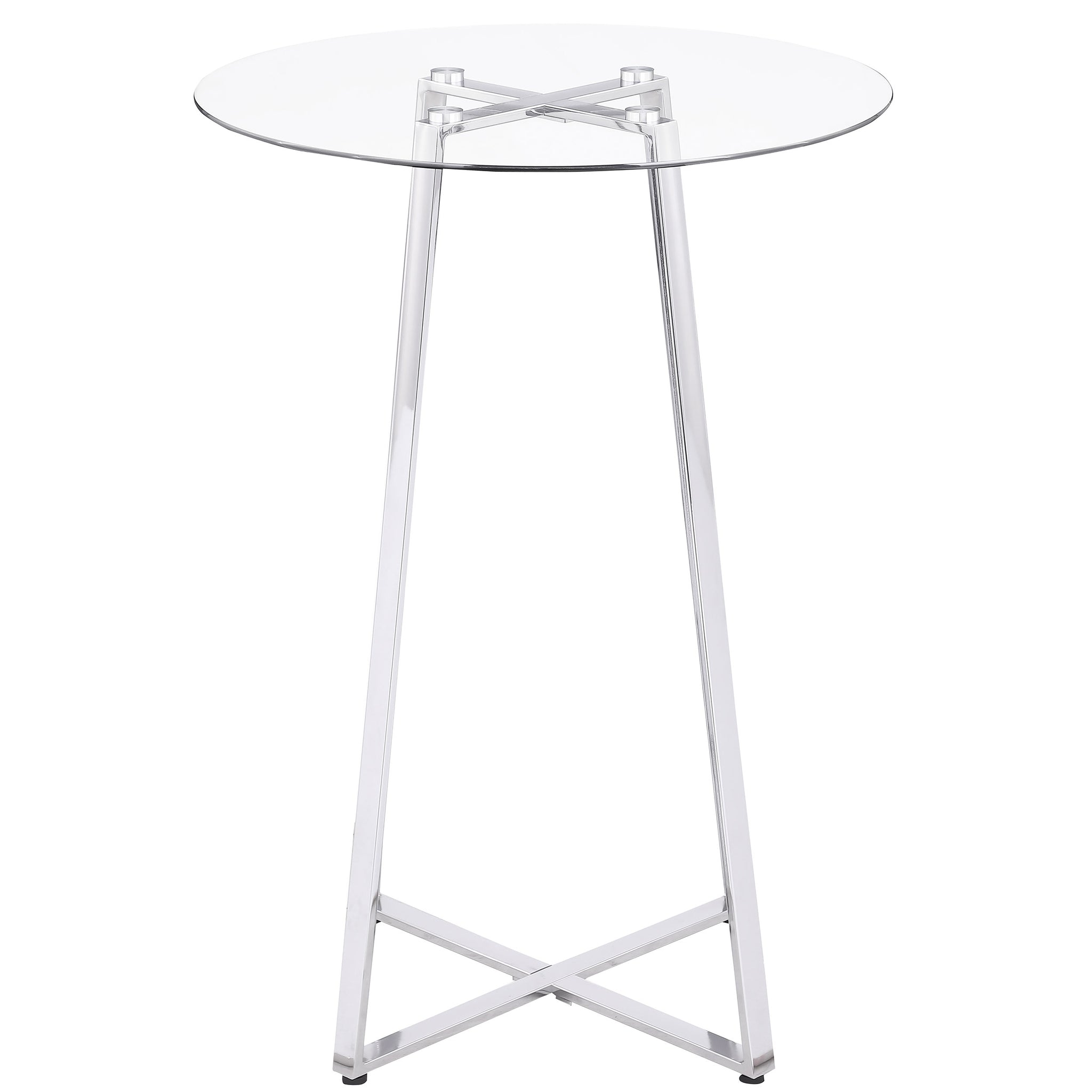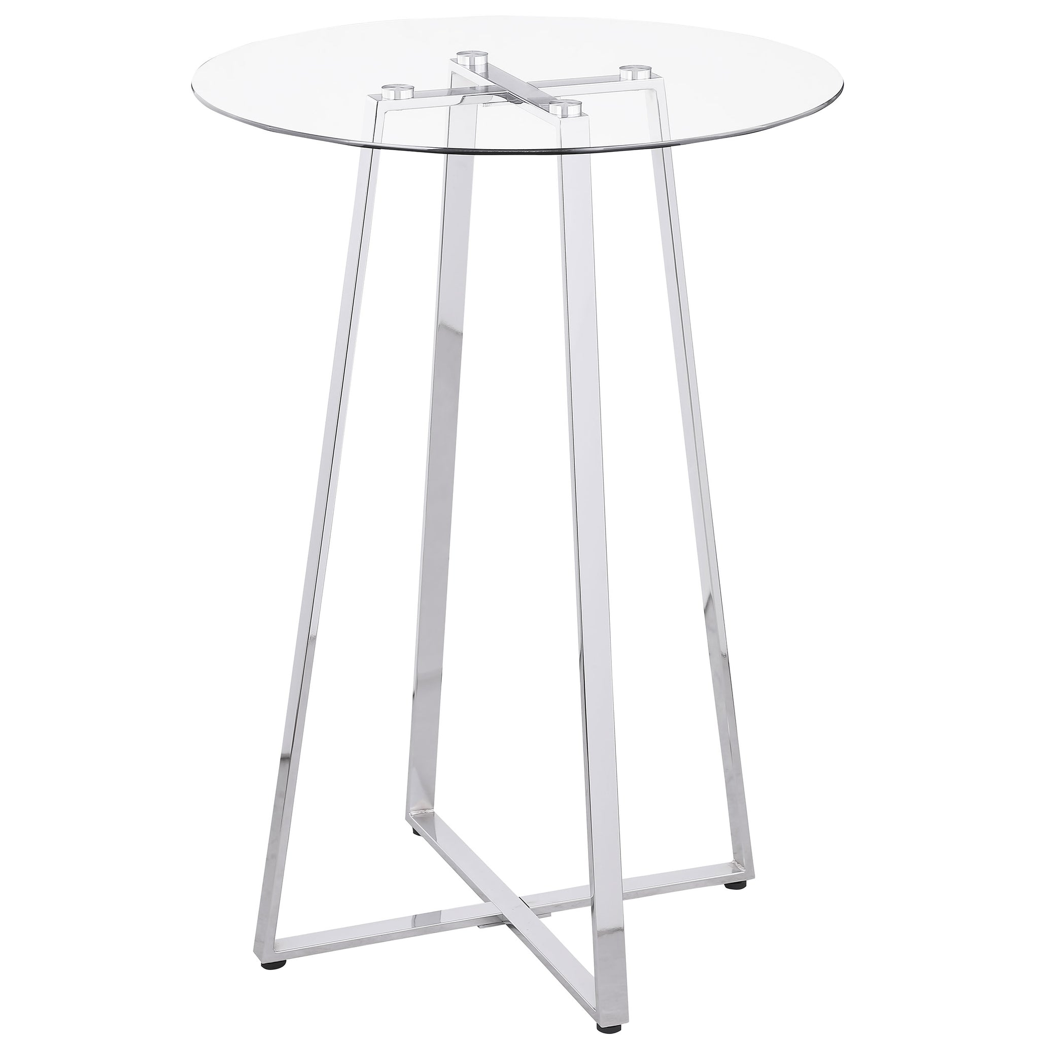 Whether you're sitting down to an intimate dinner or enjoying a cocktail with friends, this contemporary bar table helps you entertain in style. Its compact size allows for a variety of placement options, making it ideal for a small kitchen or dining area. An attractive yet simple design blends seamlessly with any home decor. Smooth, clean, tapered lines and a gleaming chrome finish give it a pleasingly modern appearance. A round, clear, tempered glass top completes its elegant look Key Features: • Round bistro bar table with a clear tempered glass top and chrome legs • Electroplated chrome base offers a polished look and lasting durability • Geometric leg frame provides stability and a minimalist silhouette • Compact 30-inch diameter is ideal for small kitchens or dining nooks • Pairs easily with modern bar stools for casual or upscale dining • Made with clear glass and heavy gauge metal in a modern profile