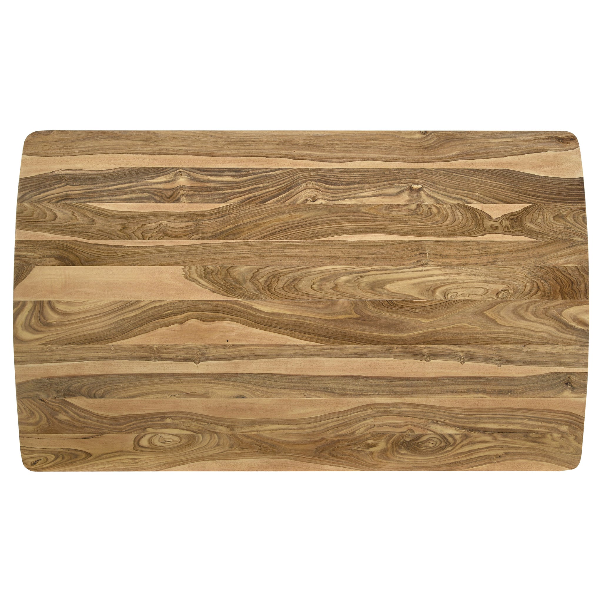 A perfect addition to contemporary homes, this mid-century style counter height table creates a warmth to a dining area with its solid natural Sheesha wood frame. Graceful curved edges and a 45-degree chamfered profile lend a softness and elegance to this furniture piece. Along the apron of this charming contemporary dining piece is an arrow-inspired graphical design in a contrasting black hue that lends a playful touch. Supported by long slender legs that taper toward the feet, this counter height table pushes the vintage vibes. Pull up a counter height stool or chair to seat six family members or guests comfortably. Key Features: • Counter height dining table crafted from solid natural sheesham wood with visible grain pattern • Rectangular top features curved edges and chamfered corners for a softened silhouette • Black arrow-inspired graphic along apron adds a playful, modern design element • Tapered round legs enhance mid-century styling and provide stable support • Seats up to six people comfortably for dining or casual entertaining • Durable construction supports up to three hundred pounds of evenly distributed weight