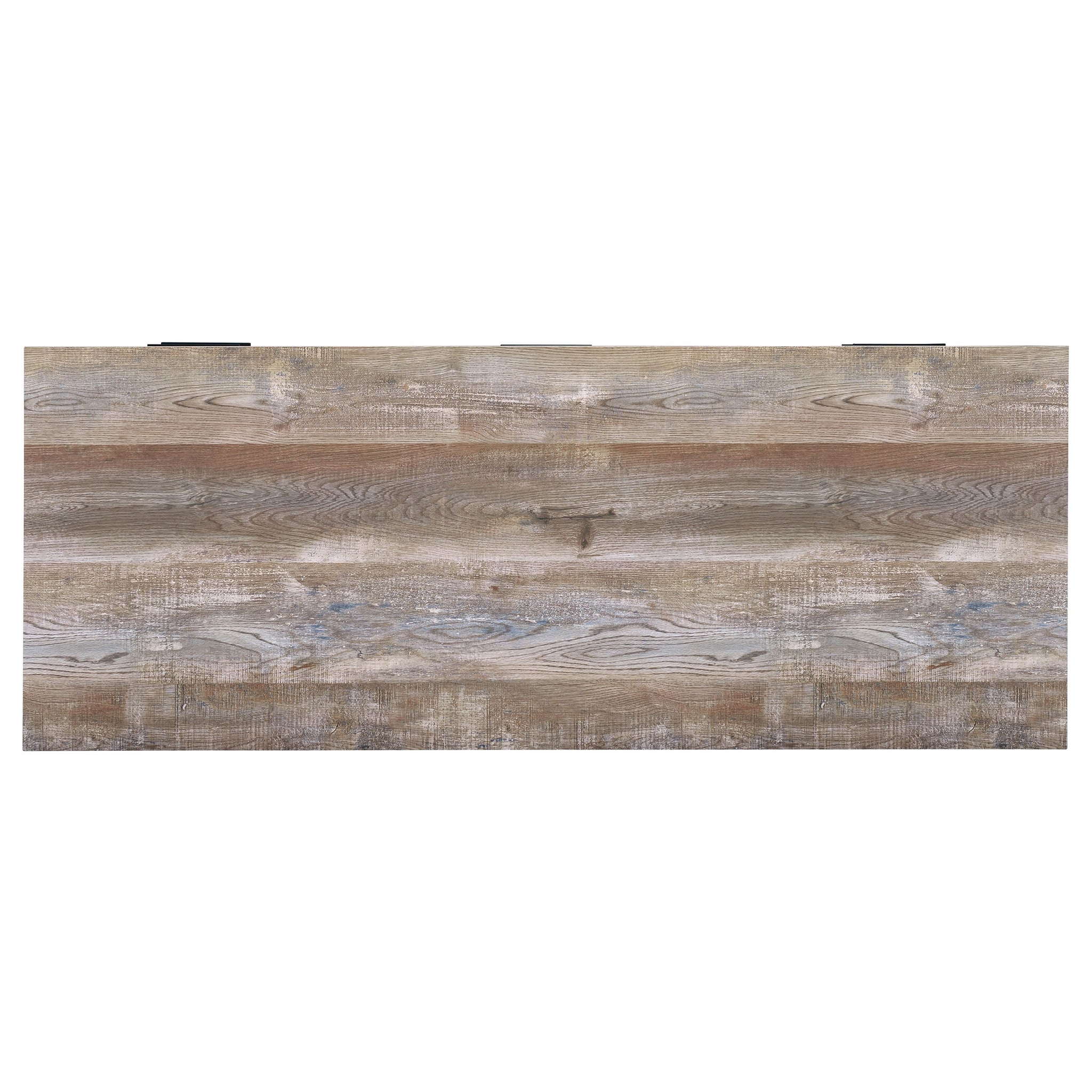 Infuse your office space with stylish simplicity. With a rustic, aged oak finish, this office desk exudes classic charm. Its strong silhouette is brought to life by crisp, clean lines of bold, black metal. Complete with five spacious storage and file drawers, this desk makes it easy to stay organized. Complete with euro glides and high-quality craftsmanship, it's the ultimate in durable practicality. Key Features: • Industrial-inspired office desk with weathered oak top and black metal frame • Includes four drawers and one cabinet for storage and organization • Engineered wood top offers spacious work surface with laminate coating • Flat black drawer pulls complement minimalist modern styling • Ideal for home offices needing concealed file and supply space • Durable, functional design supports both remote work and study setups