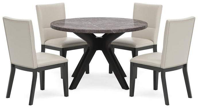 Nasir Gray Printed Faux Marble & Mirrored Silver Finish Dining Room Table