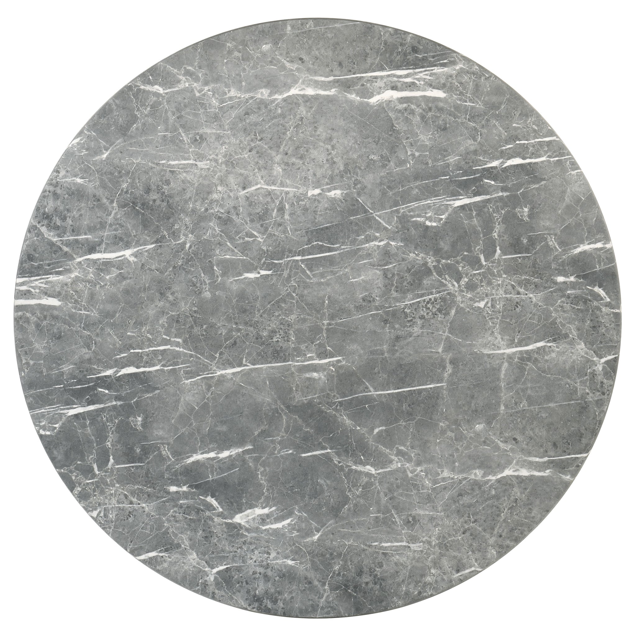 This round dining table blends sculptural minimalism with cutting-edge durability for a bold yet refined statement. Its Smart Top surface features a revolutionary faux marble laminate that is environmentally friendly, heat resistant, break-proof, stain and scratch resistant, and effortless to maintain. The veined grey top rests on an inverted conical pedestal in a rich dark oak finish, crafted from four interlocking panels with tension lever table lock for seamless assembly. Ideal for seating four to six, it elevates any modern dining room. Key Features: • Round dining table with patented Smart Top in faux grey marble for visual appeal and easy care • Dark oak conical base assembled from four panels secured by tension lever table lock • Smart Top is heat resistant, stain resistant, scratch resistant, and break-proof • Laminated faux marble surface is environmentally friendly and easy to maintain • Crafted from ash veneer and engineered wood with strong, stable construction • Comfortably seats four to six for everyday dining or casual entertaining