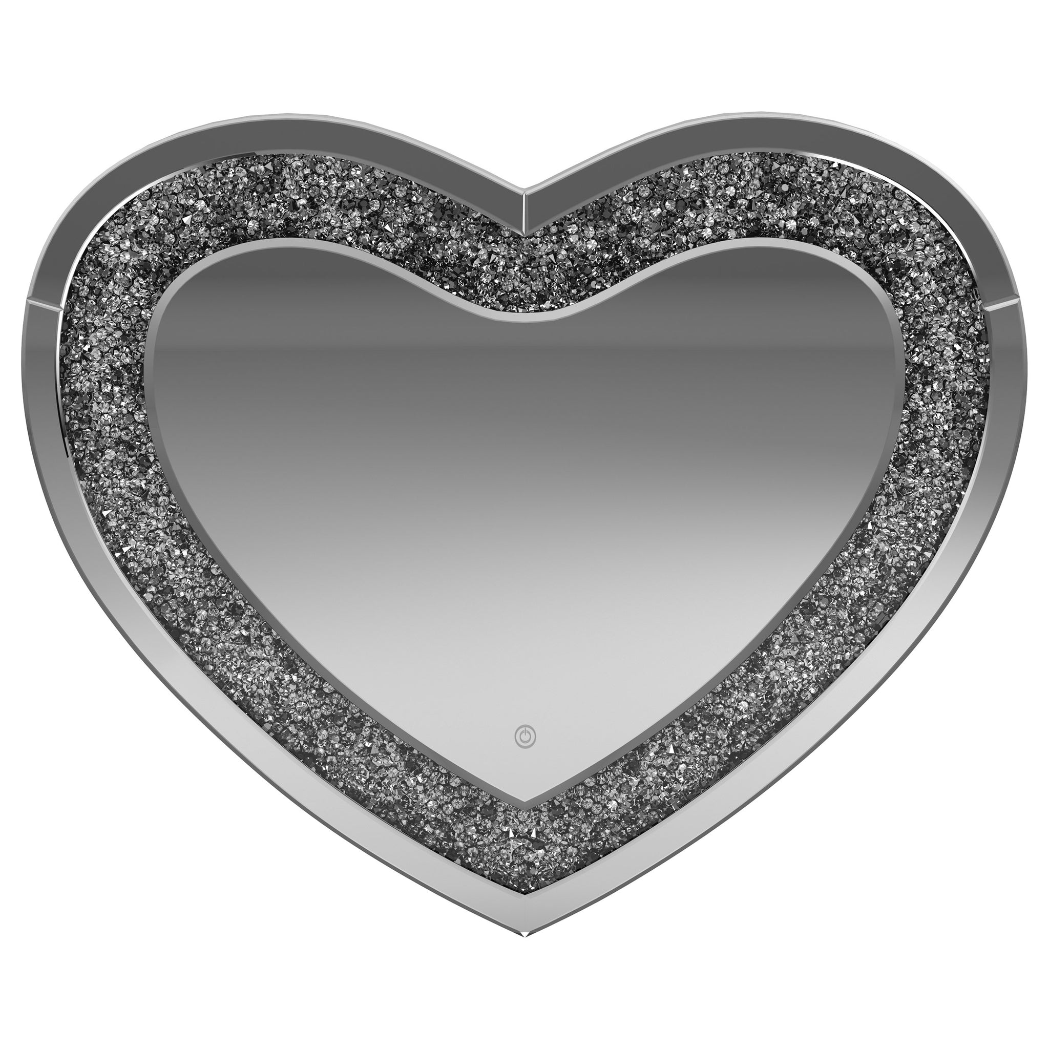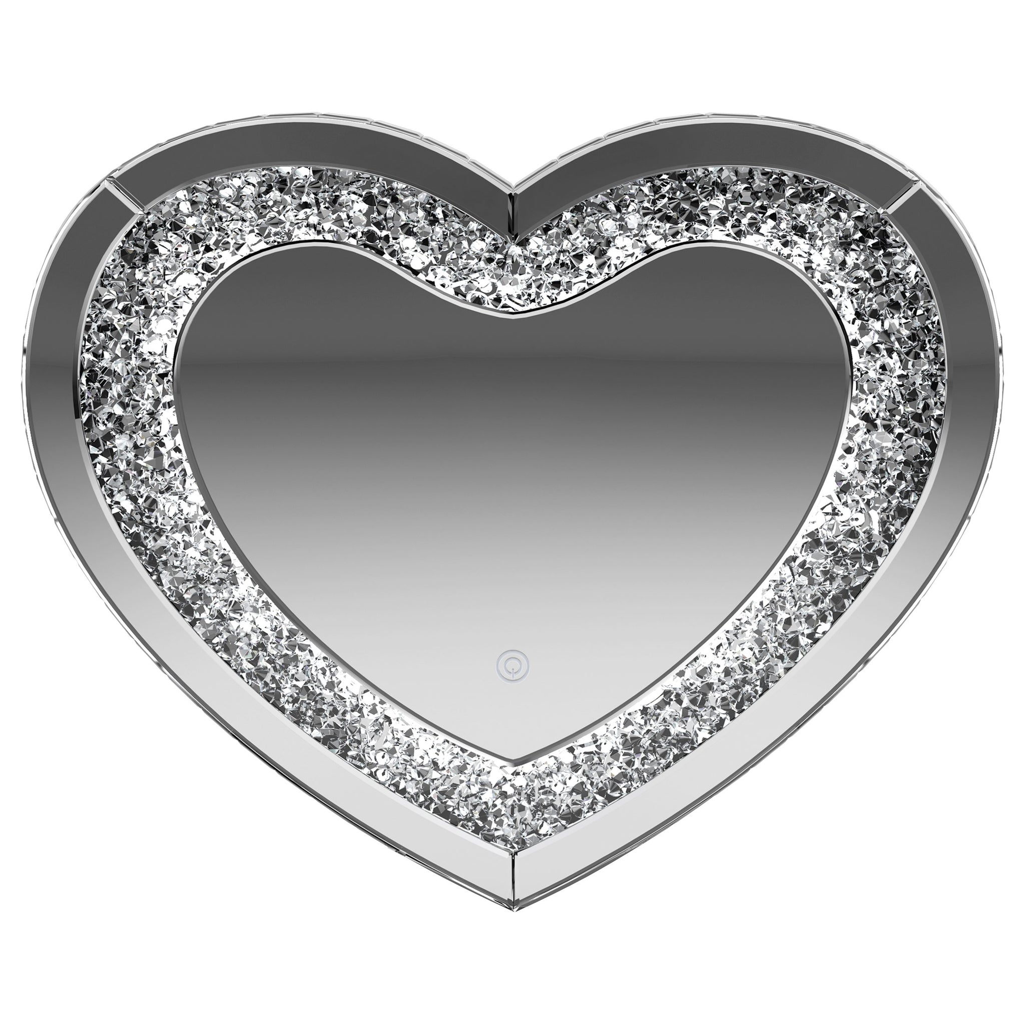 This heart-shaped wall mirror adds sparkle and function to glam-inspired spaces. Framed with mirrored glass and outlined by faceted acrylic crystal inlay, it delivers high-shine appeal. Integrated LED lighting enhances visibility for makeup, grooming, or daily routines. Designed for wall mounting, this decorative mirror combines charm and practicality—ideal for bedrooms, vanities, or dressing areas needing both style and illumination. Key Features: • Wall-mounted heart-shaped mirror designed to double as a decorative and functional piece • Framed in mirrored glass for sleek, high-shine style and glam appeal • Inset acrylic crystal inlay adds sparkle and textural contrast around the border • LED lighting built into the mirror for enhanced visibility during grooming • Ideal for bedrooms, vanities, or personal dressing areas with bold flair • Mounts securely to the wall and adds charm to glam-themed interior spaces