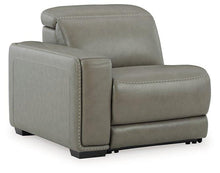 Truly putting high design into recline, this power reclining sectional with gray leather match upholstery proves that just because you’re a recliner doesn’t mean you have to look like one. Deceptively beautiful, its ultra clean-lined aesthetic is as cool and contemporary as they come. Low-profile back has a super swank look. When you need more support for your head and neck, the press of a button engages the Easy View™ power adjustable headrest, designed to let you lean back and still have a primo view of the TV. Ever-so-subtle curves and stunning stitching perfect the aesthetic.