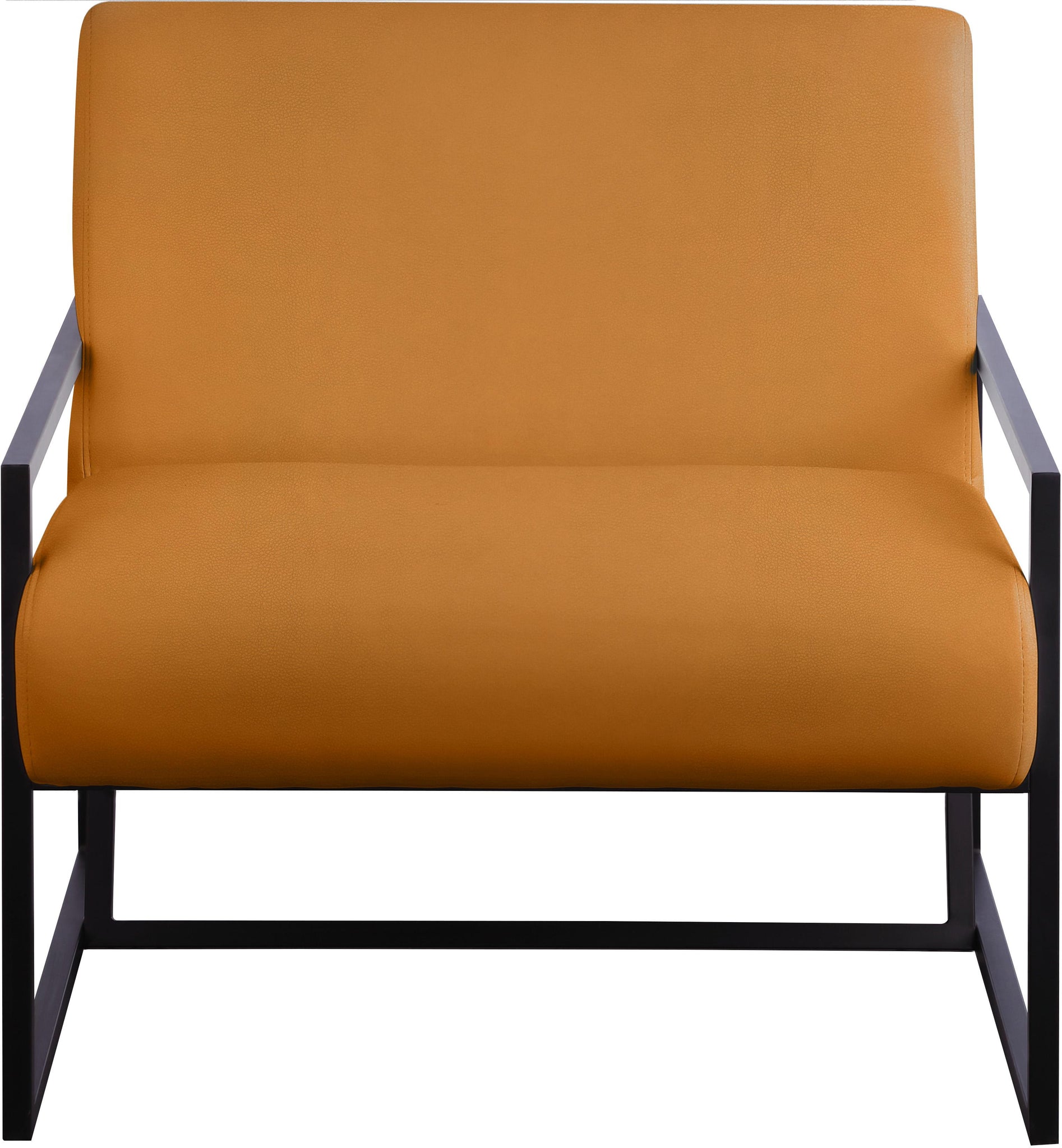 Feel like a boss whenyou'rere seated in this Industry faux leather accent chair. This handsome chair catches the eye instantly with its softy cognac faux leather upholstery on the seat and back, both of which are padded for total comfort. The matte black metal frame lends it a definitive contemporary vibe while giving the chair a long-lasting design and sturdy demeanor.