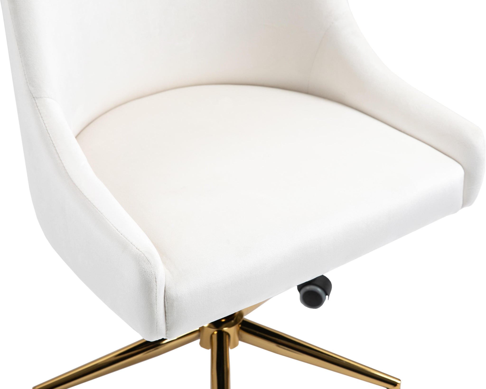 Bring functional beauty to the limelight whenyou'rere seated in the comforting confines of this Karina Velvet Office Chair. This chair isn���t just another handsome face for your office, althoughyou'rell fall for its soft cream velvet upholstery and rich gold base. This contemporary chair is just as utilitarian as it is attractive, with its swiveling design and five-star base with casters to make it easy to maneuver around your workstation. The chair is also adjustable, so it���s easy to get comfortable and find your favorite sitting position.