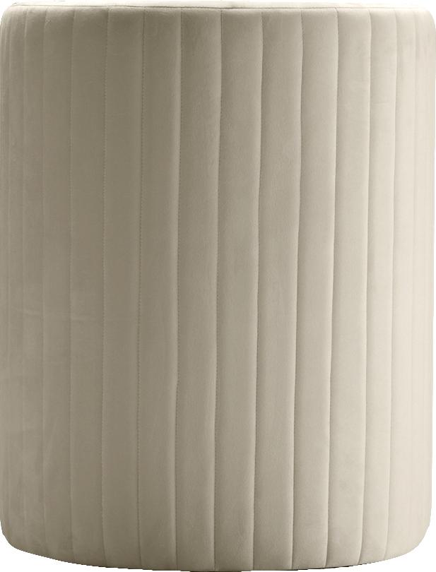 Create a chic atmosphere with this Selena Cream Velvet Accent Chair. This handsome chair has a fun barrel design that lends contemporary charm to a bedroom, living room or sitting room. The chair and matching included ottoman are covered top to bottom in plush velvet for a sumptuous look. Channel tufting adds a visually exciting finish to this elegant pair.