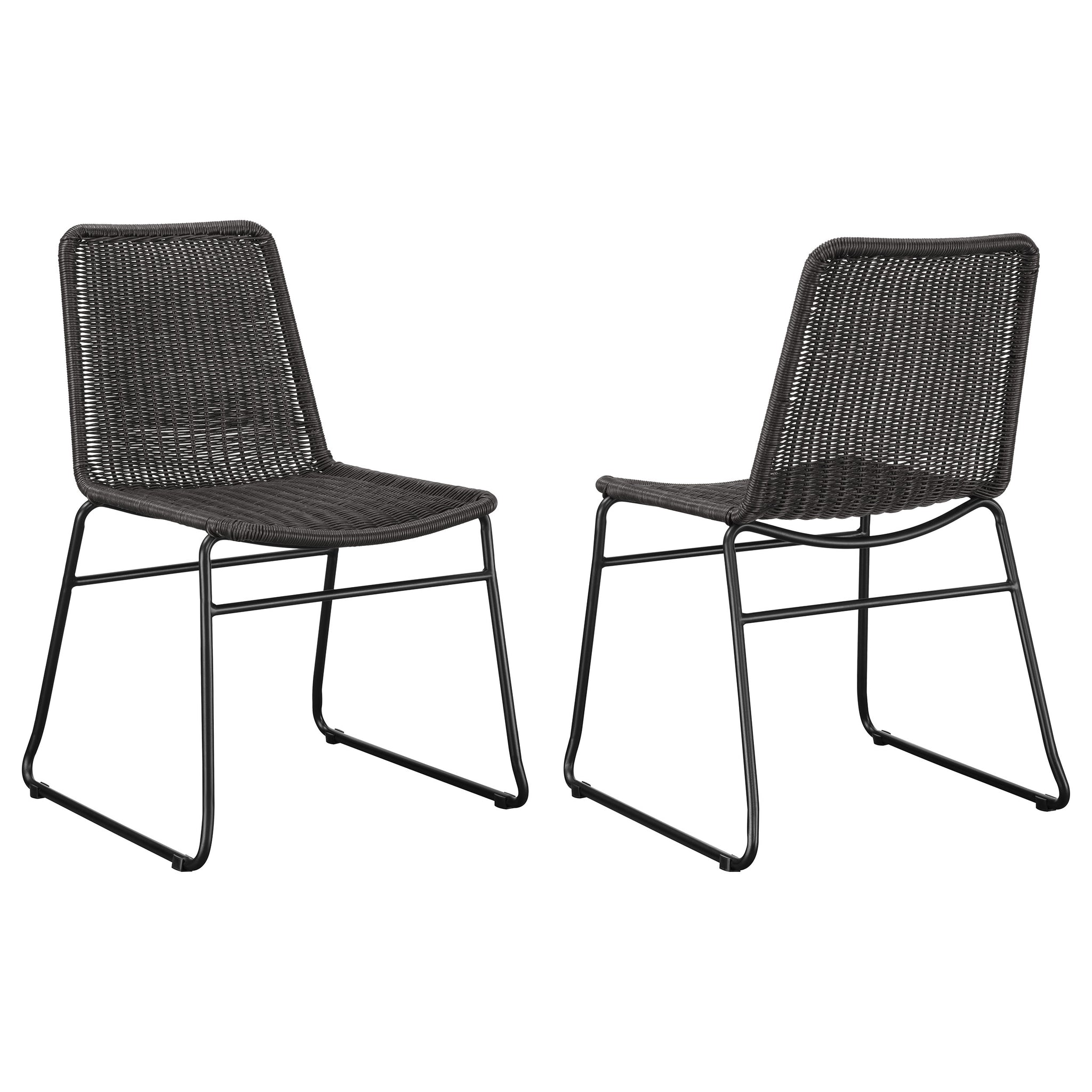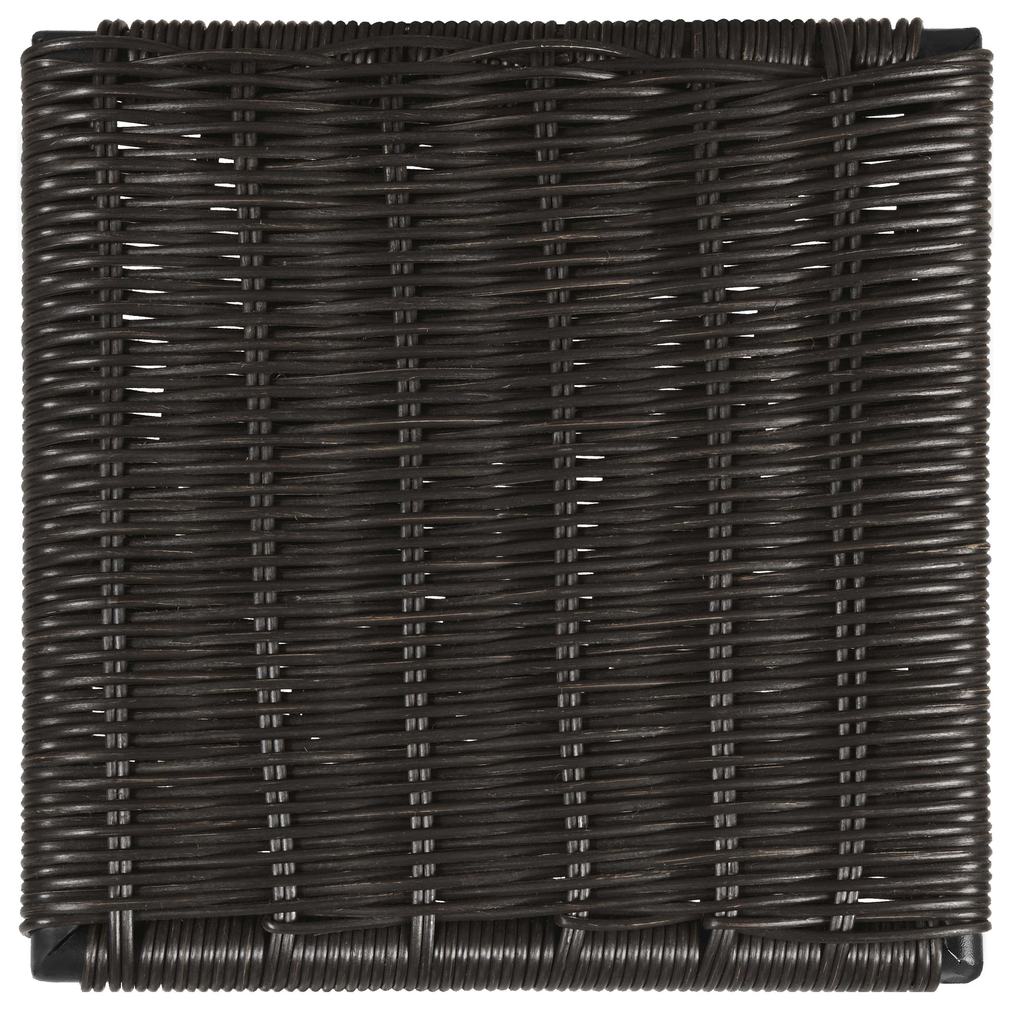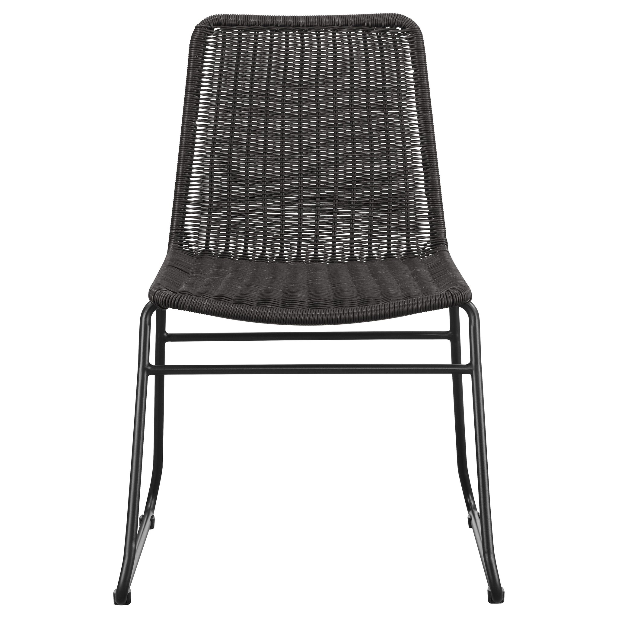 Place this transitional dining chair in a space for a hint of texture. Designed with a brown handwoven faux rattan across the seat, this charming chair offers a natural, boho-inspired vibe. Mounted on a black metal frame that offers all the support one needs, this lovely dining chair also offers vintage vibes with a flared base that lends an open, airy look. The sandy black slim frame also creates bold lines. Place this rattan-wrapped dining chair at a mid-century style dining table or allow it to grace a home office for extra guest seating. Key Features: • Transitional dining chair with a boho-inspired design • Features a brown handwoven faux rattan seat for a natural texture • Mounted on a sturdy black metal frame for ample support • Offers vintage vibes with a flared base for an open, airy look • Versatile use, perfect for a mid-century style dining table or as extra seating in a home office