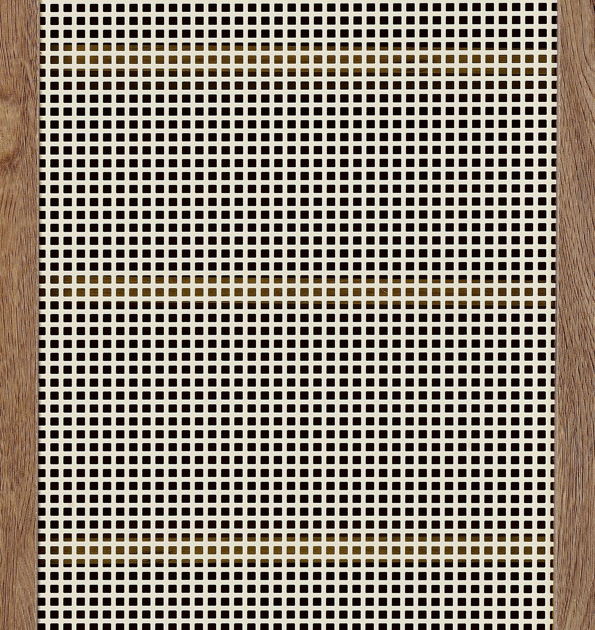 Enhance your entryway with this stylish shoe cabinet, pairing natural oak hues with modern, functional details. Crafted from engineered wood and laminate veneer, it features double doors framed by airy metal cane-style panels. Inside, an off-centered division and multiple adjustable shelves accommodate various shoe sizes, ensuring a personalized storage solution. Sturdy black metal legs anchor the piece, delivering a contemporary look that effortlessly streamlines your footwear collection. Key Features: • A chic shoe cabinet dressed in a natural oak finish • Airy metal cane-style door panels for ventilation and visual interest • Off-centered interior division and adjustable shelves for flexible storage • Engineered wood and laminate veneer construction ensures lasting quality • Supported by sturdy black metal legs for modern appeal • Perfect for organizing footwear in entryways, hallways, or closets