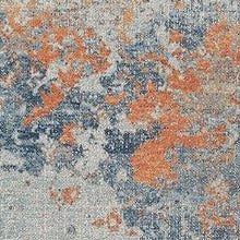 With its striking abstract pattern, this indoor/outdoor area rug leaves so much to the imagination. Its ethereal design—in shades of blue and hues of ivory, taupe, mustard and burnt orange—dresses up a room with brilliant color, visual texture and a highly contemporary point of view.